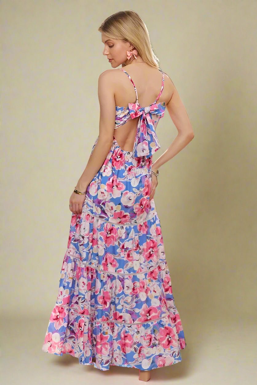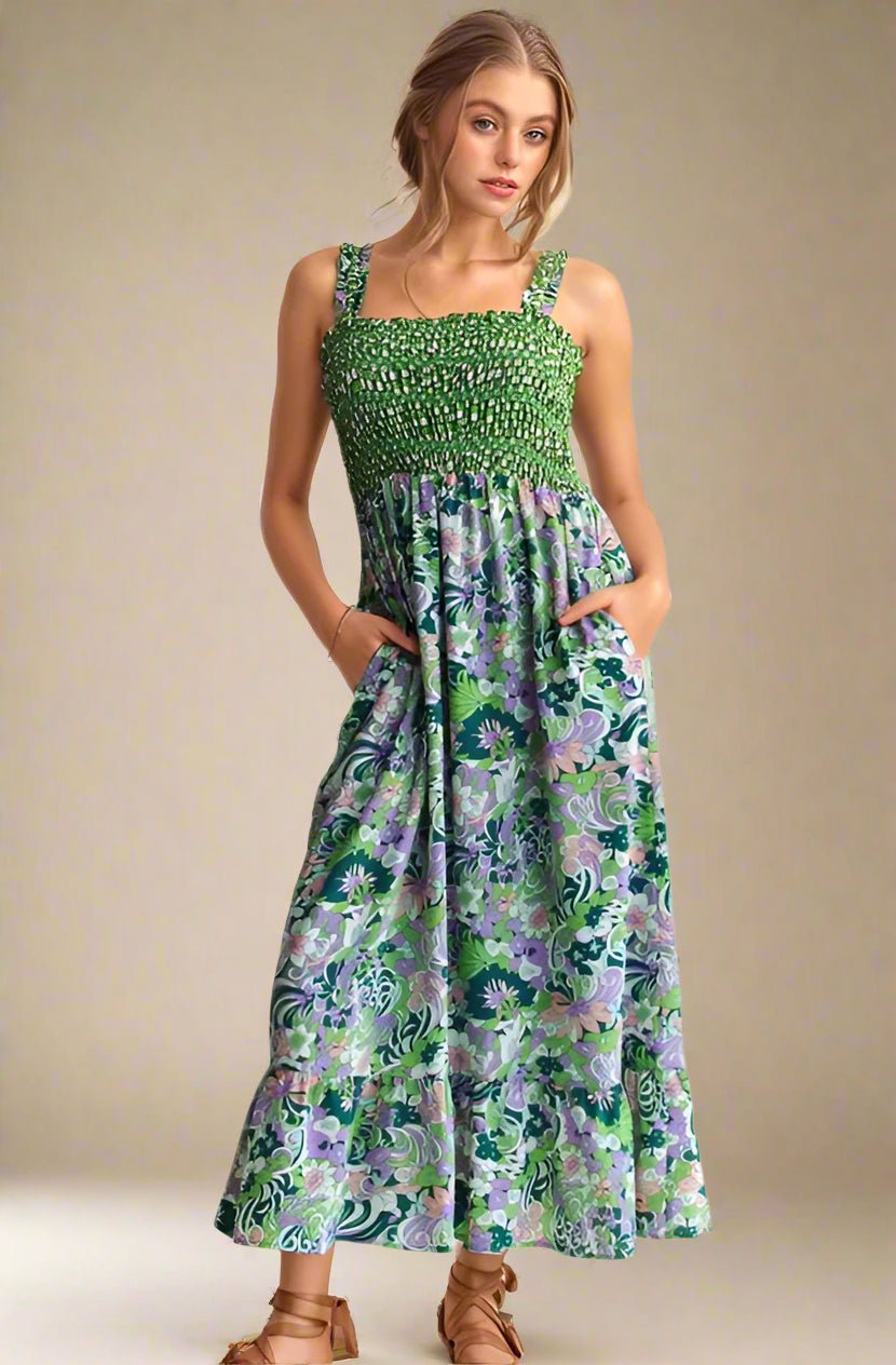 Ivory, Pink & Olive Floral Tiered Midi Dress