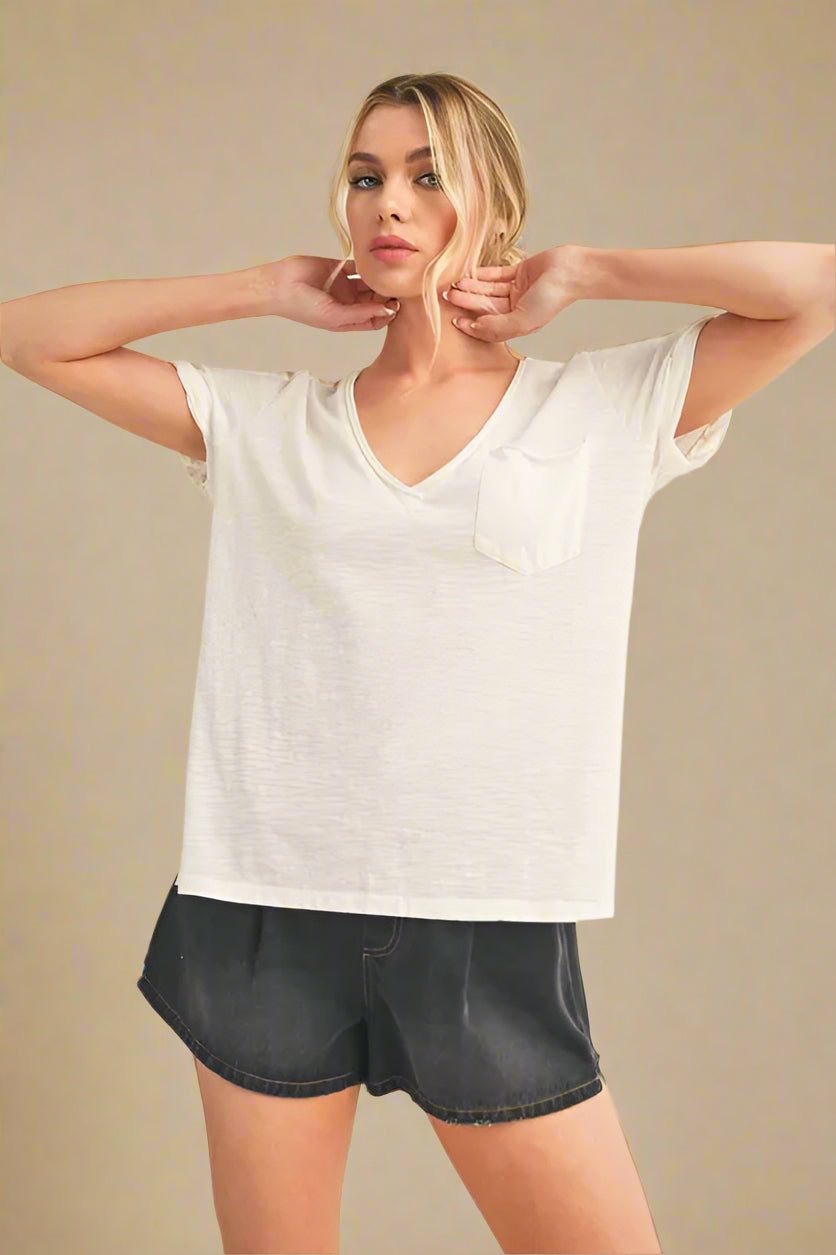 Rib Knit V-Neck Long Sleeve T-Shirt