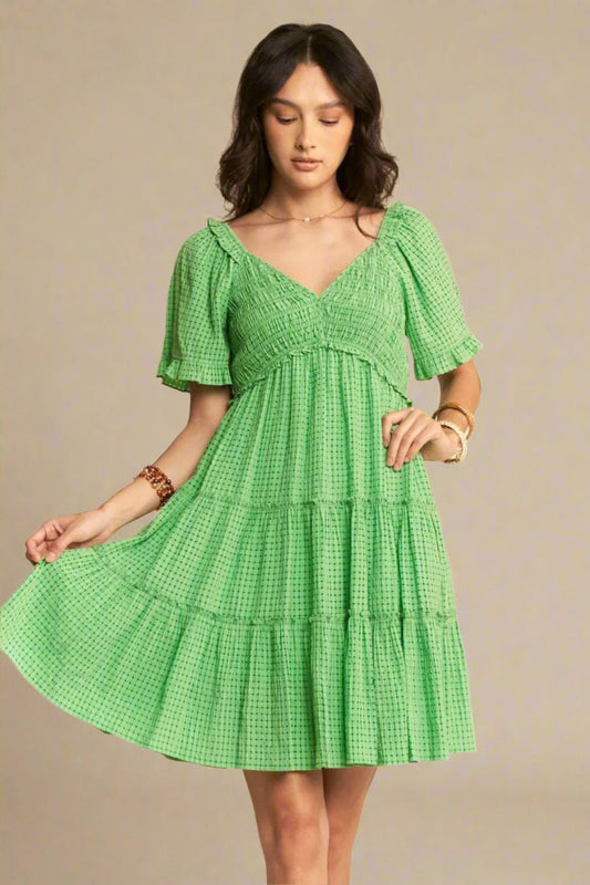 Ivory & Berry Boho Tiered Ruffle Sleeve Midi Dress