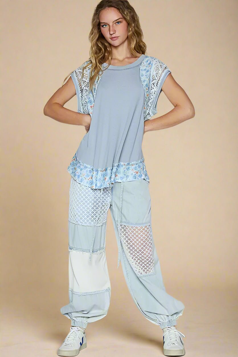 Rib Knit High-Low Hem Tunic Top and Pants Set