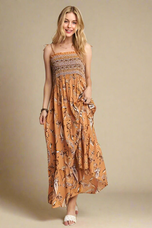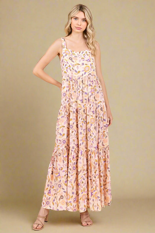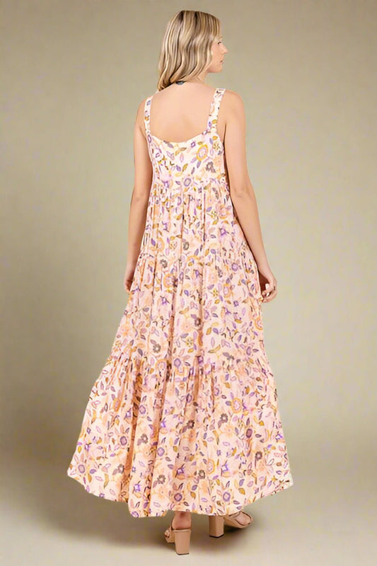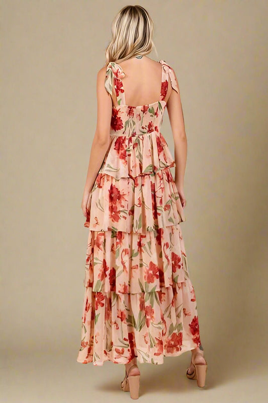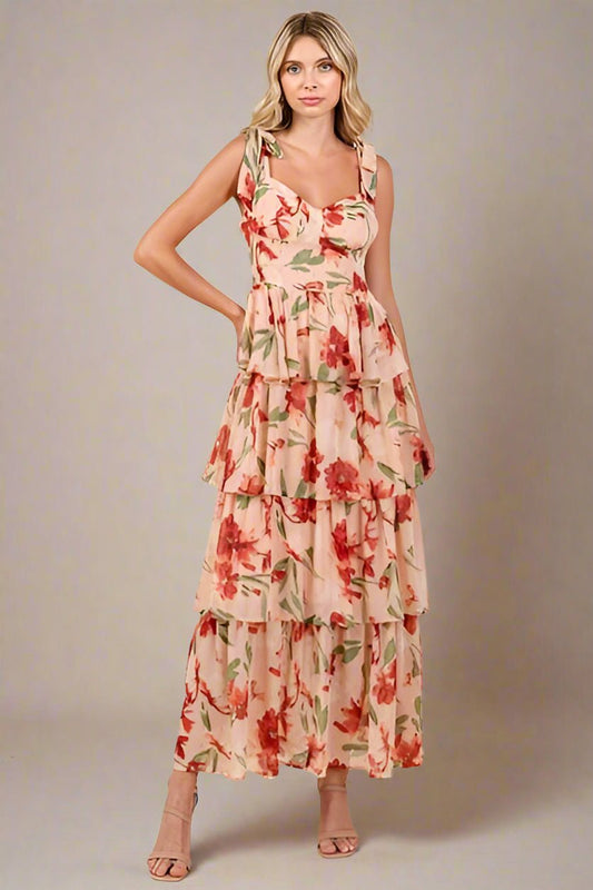 Floral Tiered Maxi Dress – Apricot Ivory