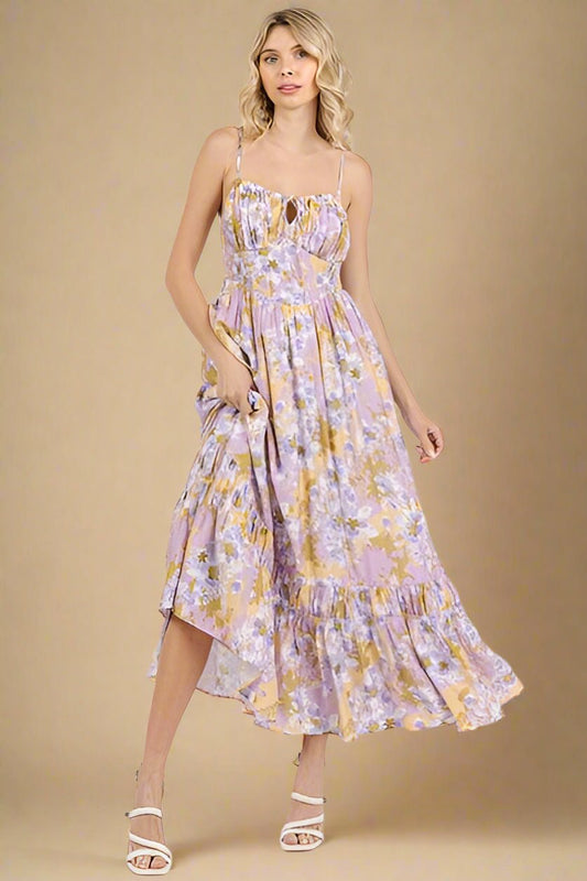 Ivory Watercolor Floral Tiered Maxi Dress