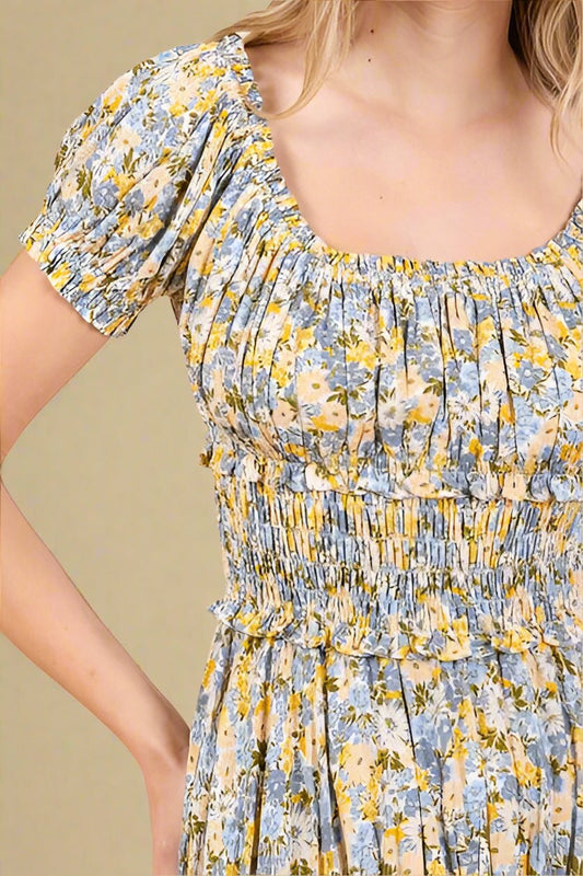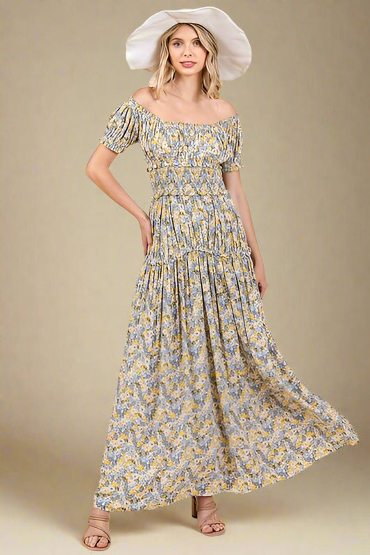 Ivory Floral Tiered Maxi Dress