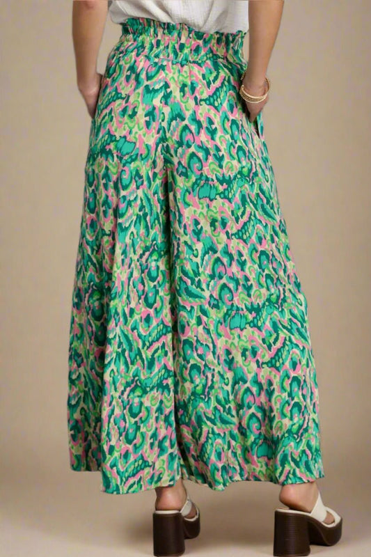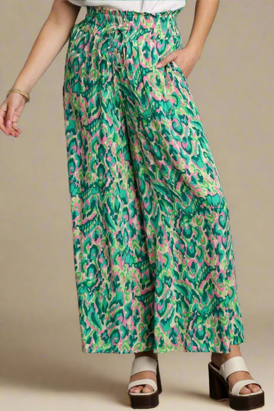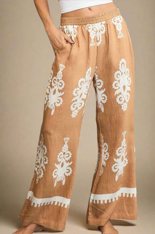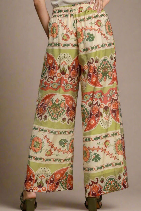 Olive Clay Boho Print Wide Leg Paisley Floral Pants