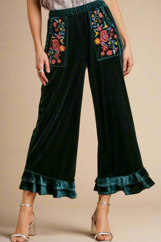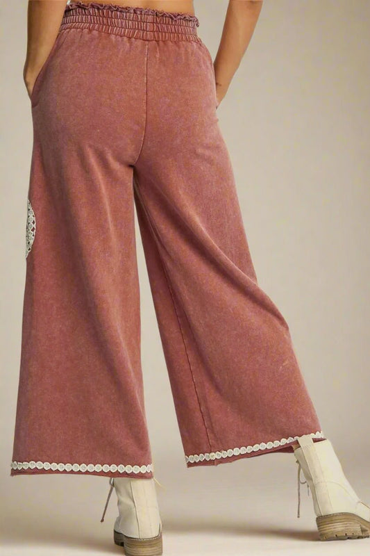 Rose Wide Leg Pants Floral Scallop Hem