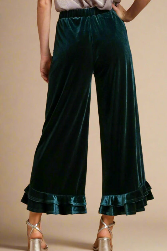 Emerald Teal Wide Leg Frayed Hem Pants