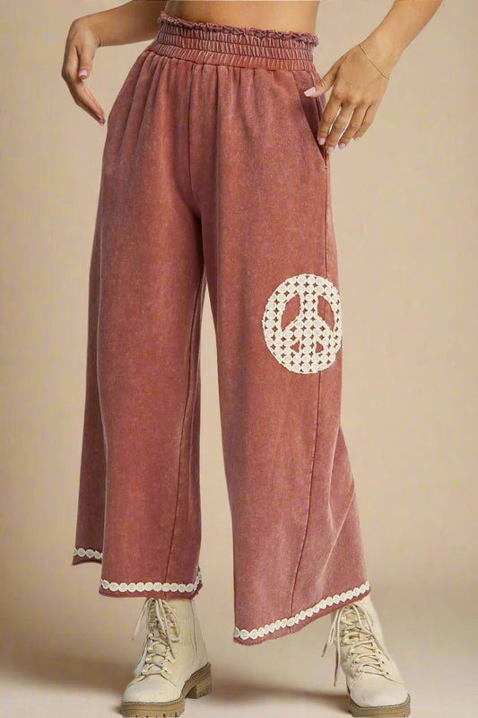 Olive Peace Patch Wide Leg Pants