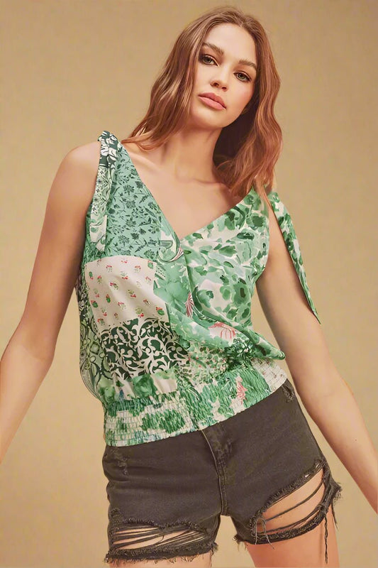 Mist Gray V-Neck Cap Sleeve Crop Top