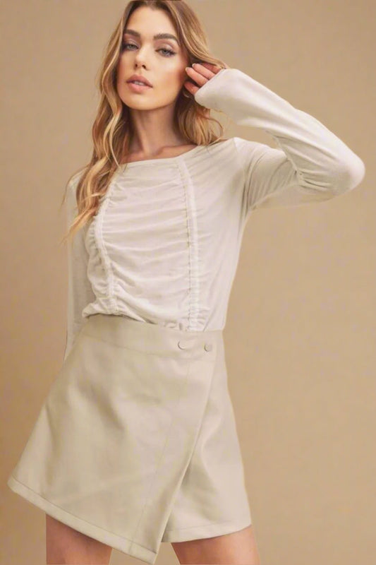 Raw Edge V-Neck Short Sleeve Tee – Winter White