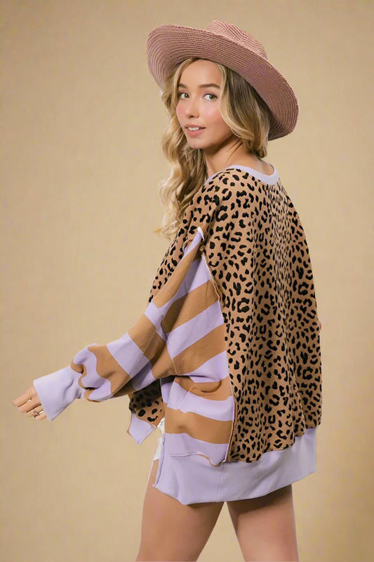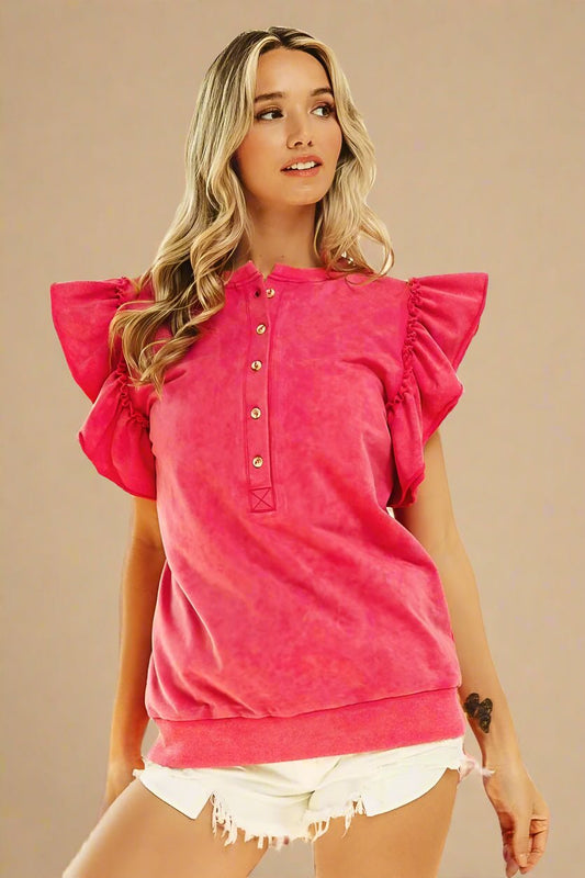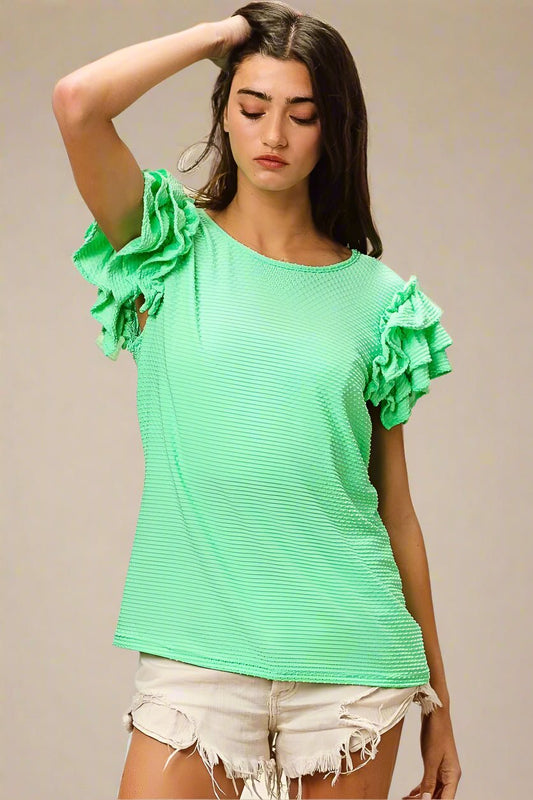 Lilac Pearl Accent Colorblock Ruffle Sleeve Top