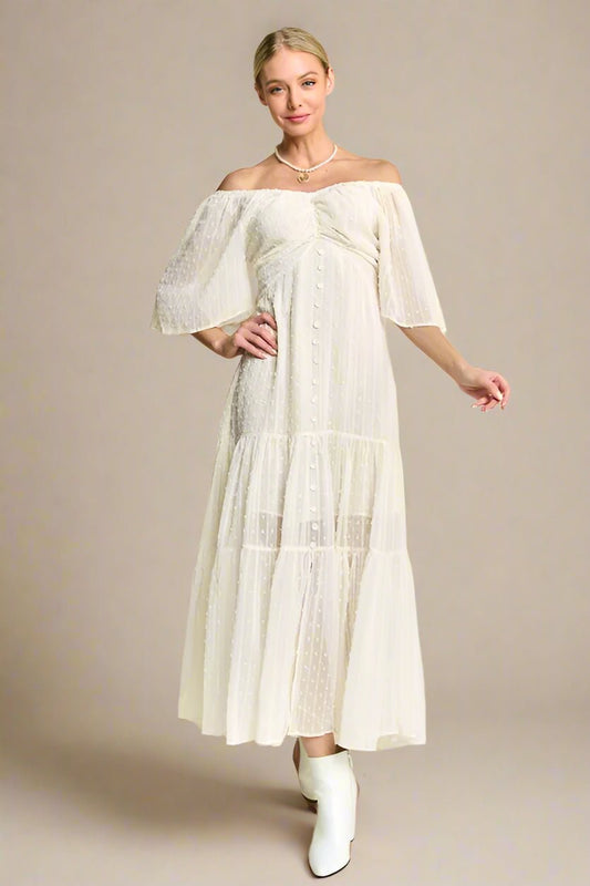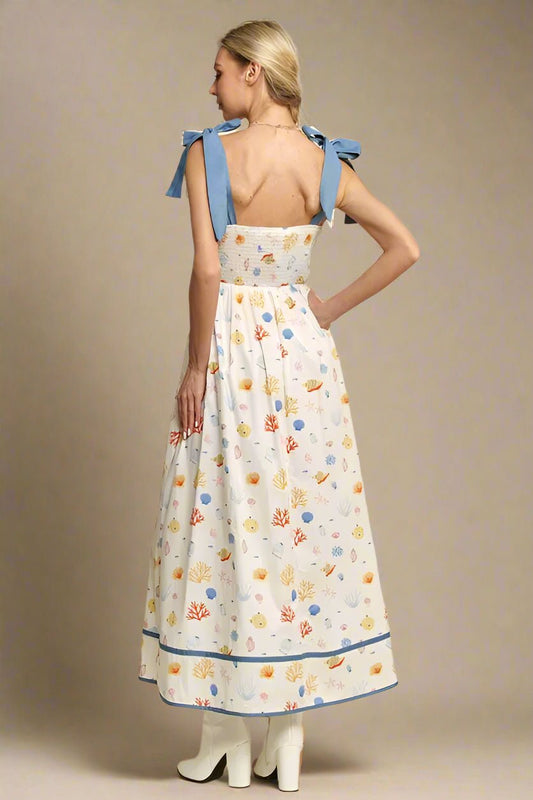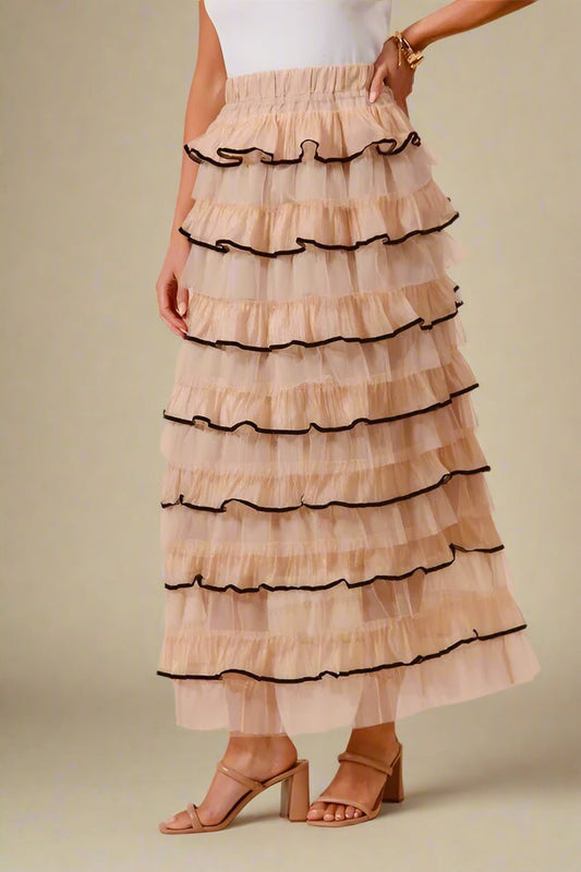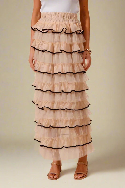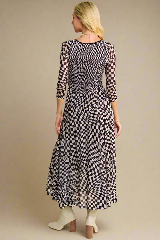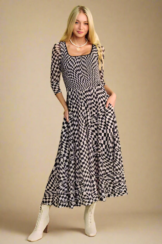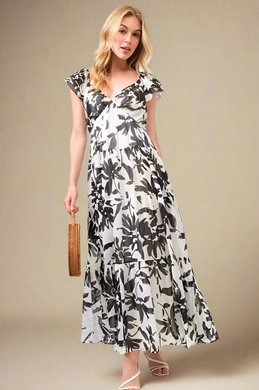 Smocked Bodice Tiered Maxi Dress – Cream & Black