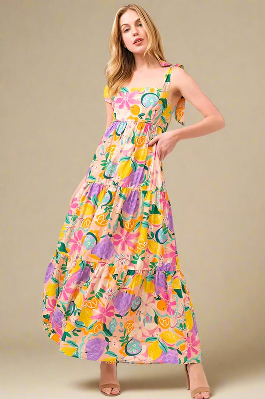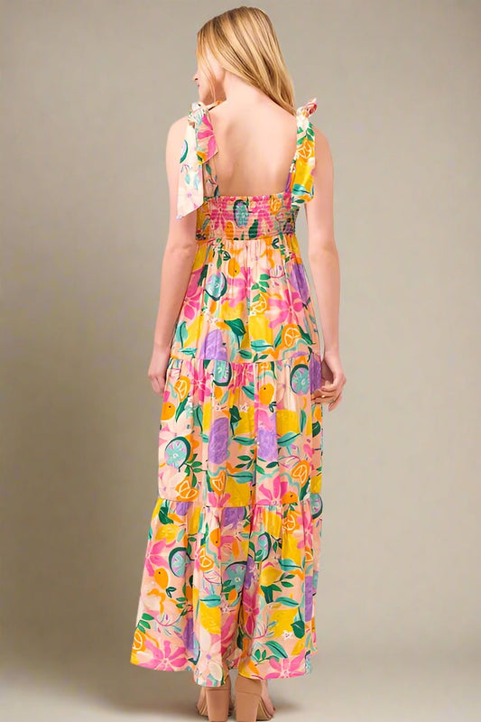 Watercolor Floral Halter Maxi Dress in Yellow & Orange