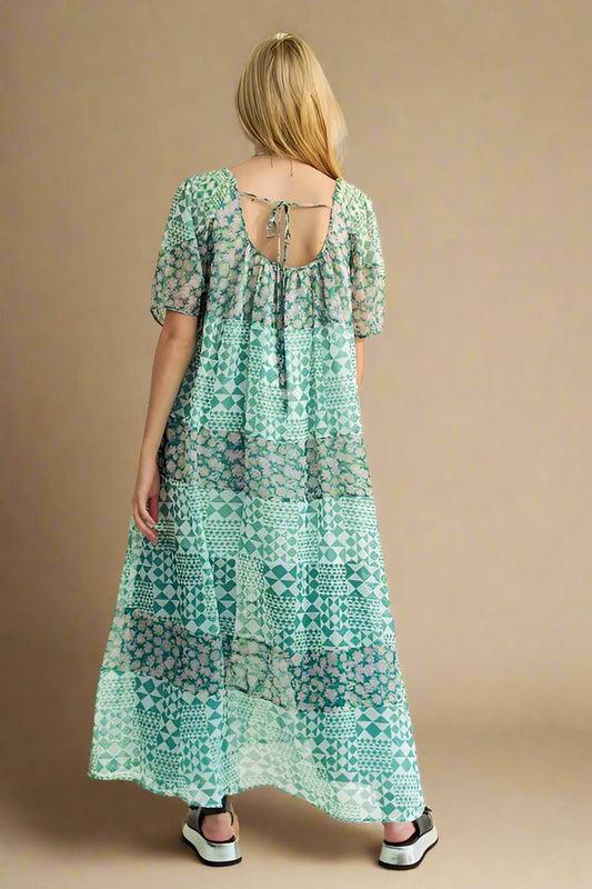 Tiered Flutter Sleeve Maxi Dress in Soft Green