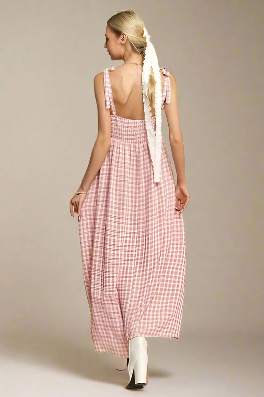Orange Gingham Tiered Ruffle Maxi Dress with Tie Straps