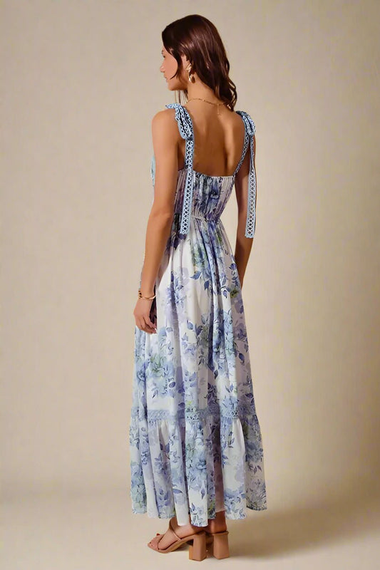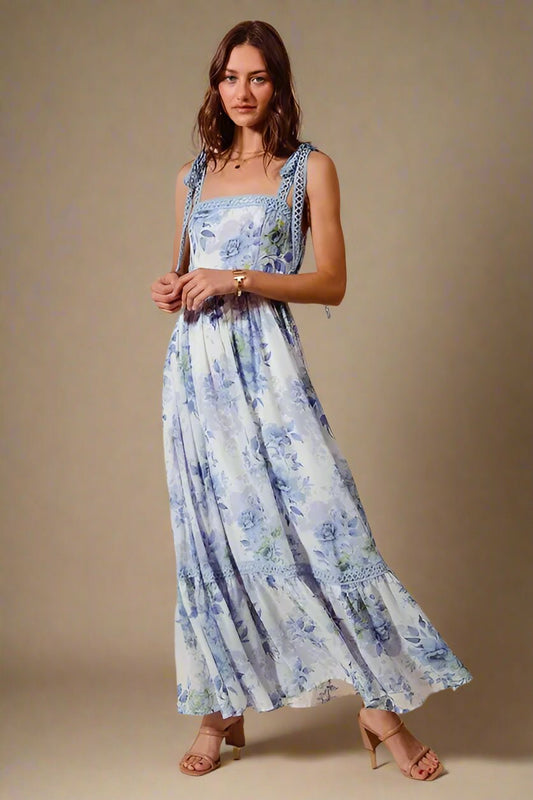 Floral Smocked Puff Sleeve Maxi Dress – Blue & White