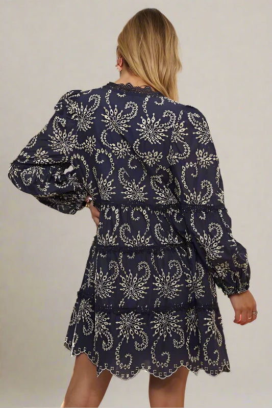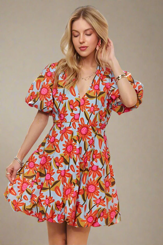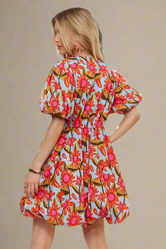 Rose & Blue Floral Puff Sleeve Mini Dress