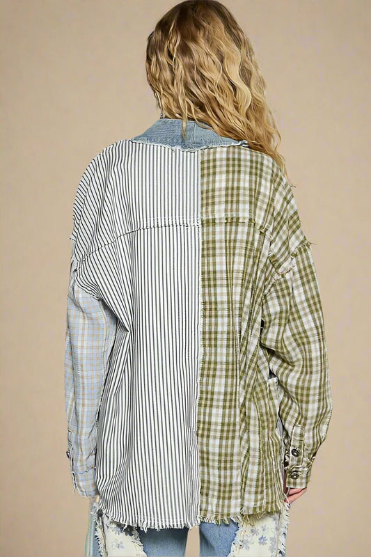 Raw Hem Button Up Cropped Denim Jacket in Sage