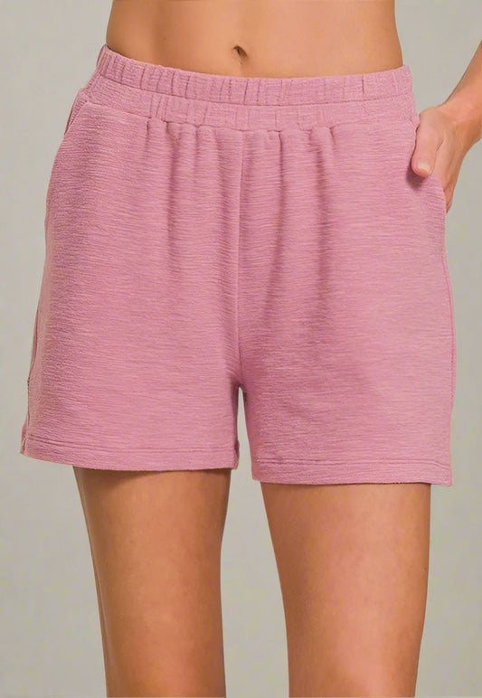 Hot Pink Waffle Knit Short Sleeve Sweater