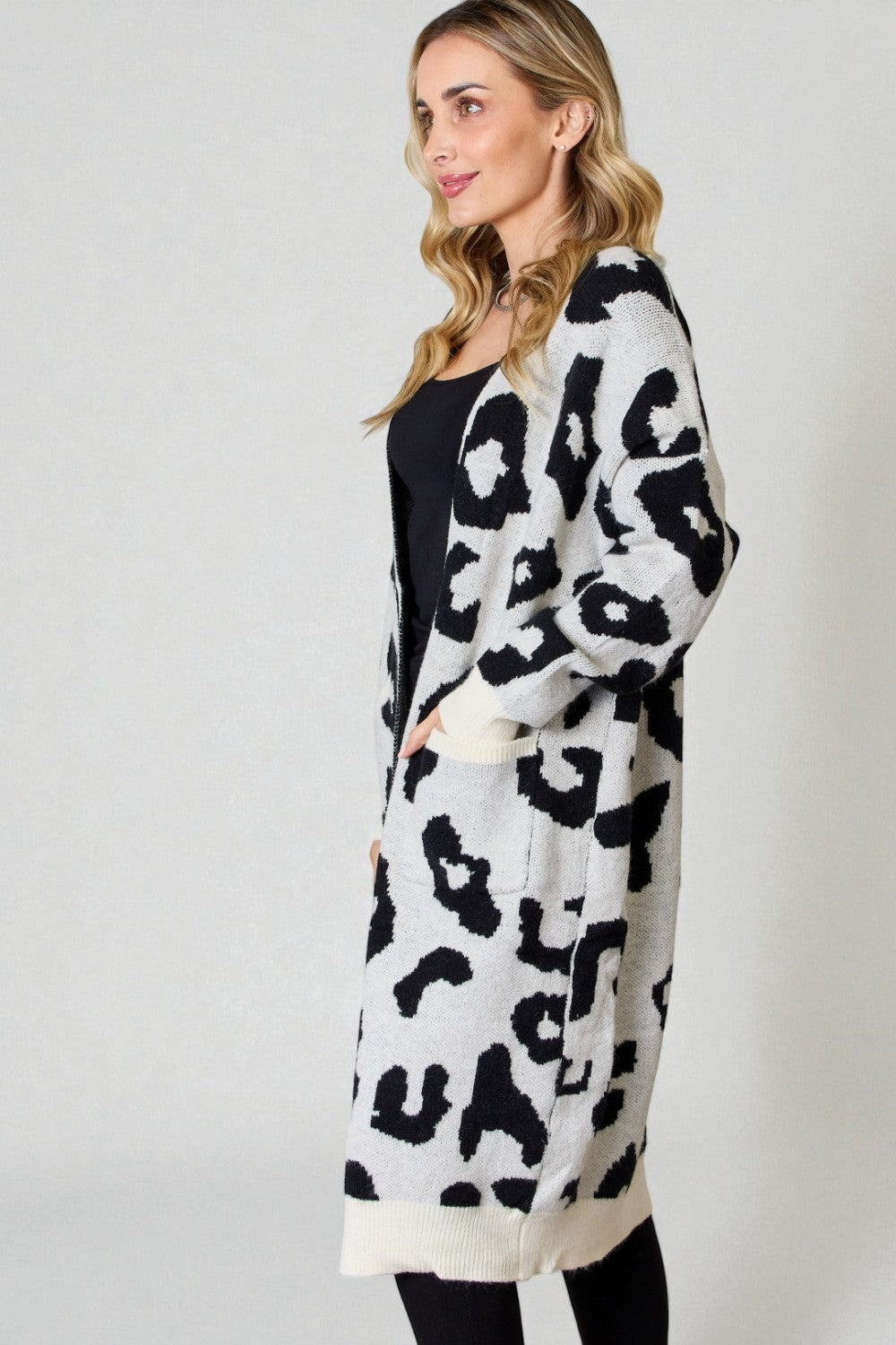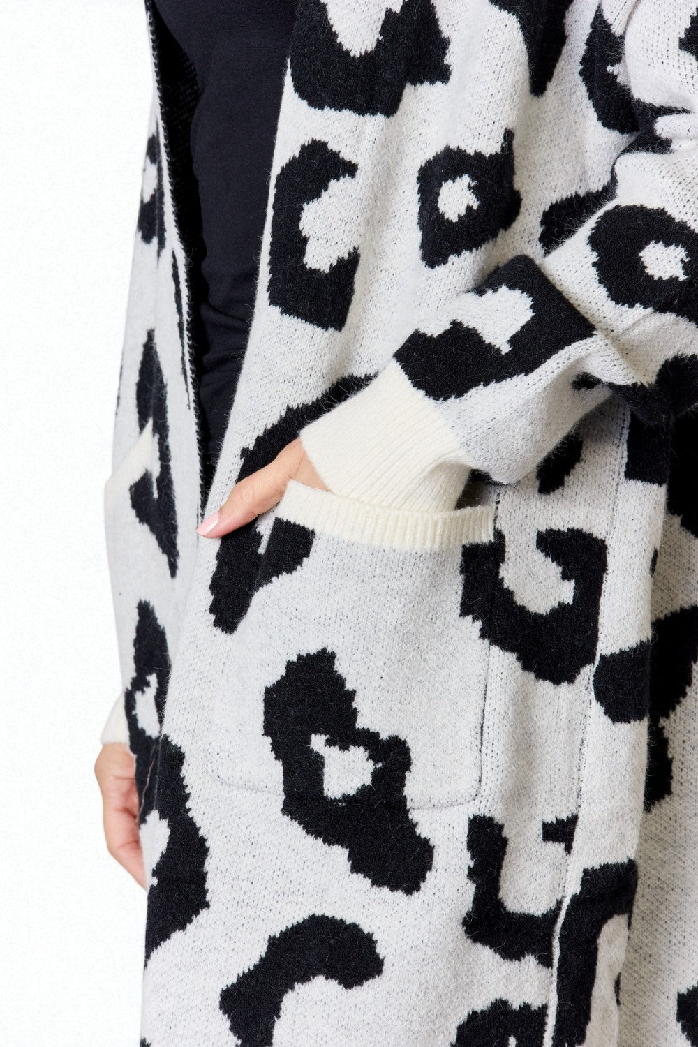 Cárdigan con frente abierto y estampado de leopardo en marfil