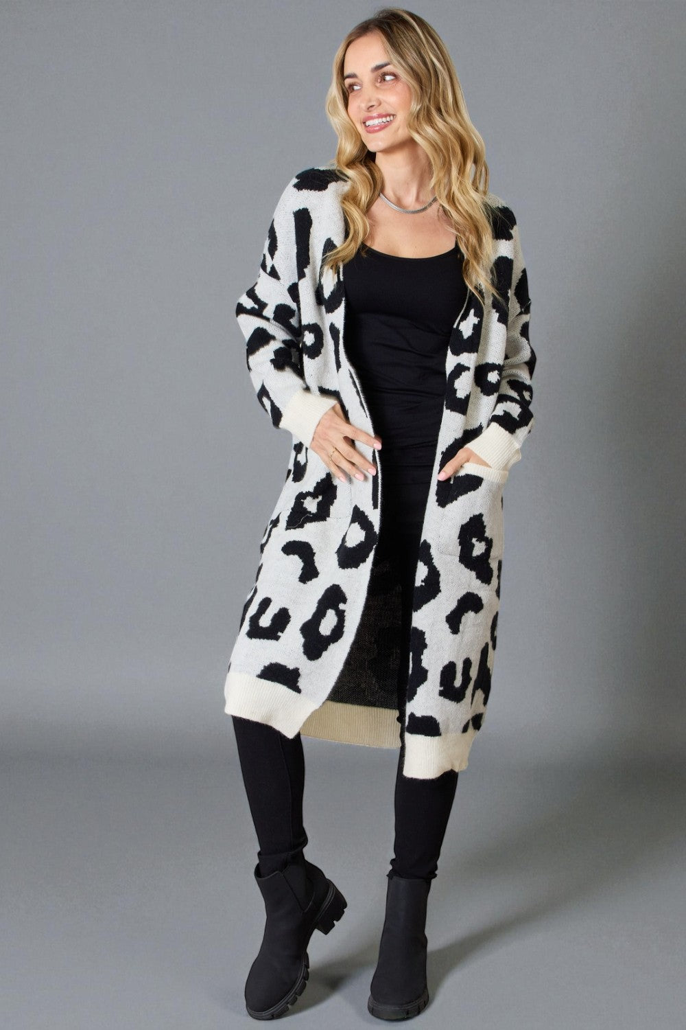 Luce elegante y mantente abrigado con este cárdigan abierto con estampado de leopardo color marfil. Su material cómodo y su diseño único harán de esta tu prenda favorita esta temporada.