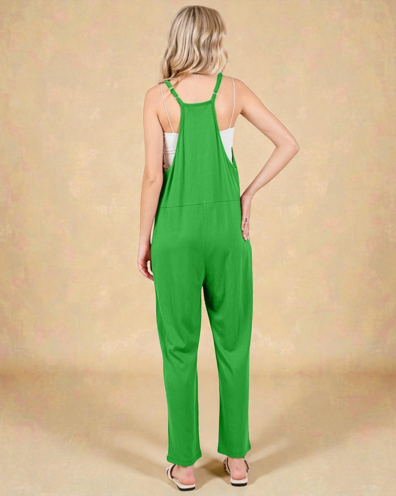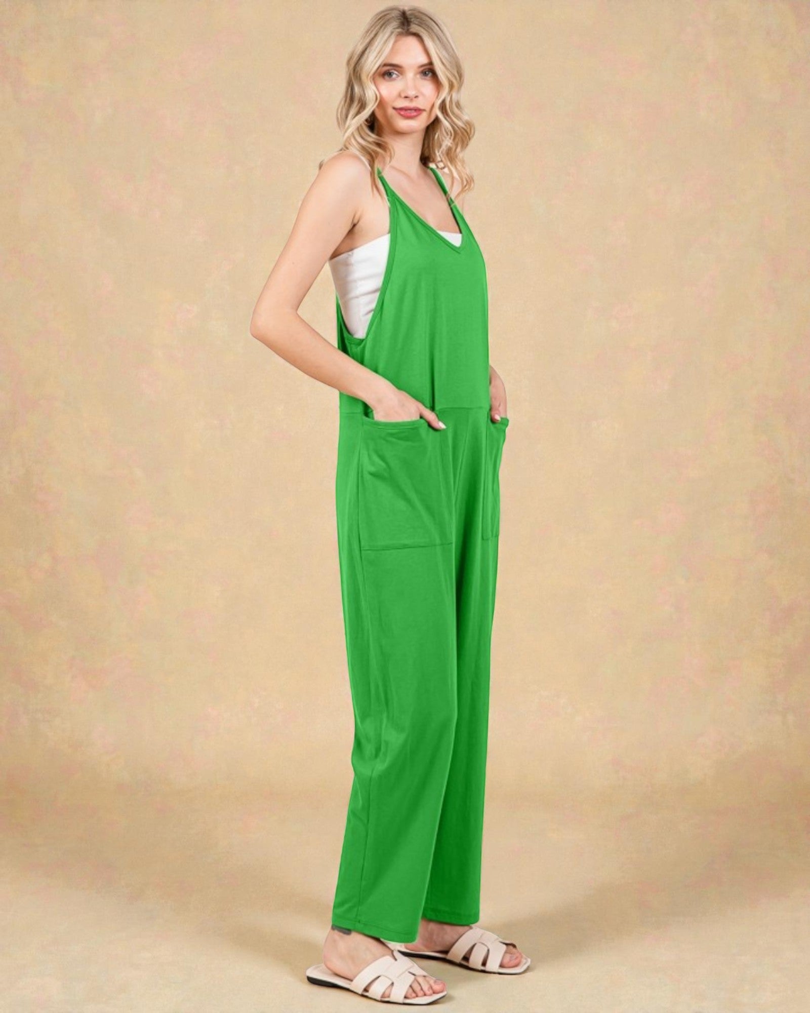 Este mono lo tiene todo: funcionalidad y estilo. Está confeccionado con una mezcla de algodón y rayón, es cómodo y suave para la piel. Además, con tallas amplias, es perfecto para todos. ¿Y mencionamos los bolsillos? ¡Ten tus artículos esenciales a mano mientras te ves fresca con este verde vibrante!