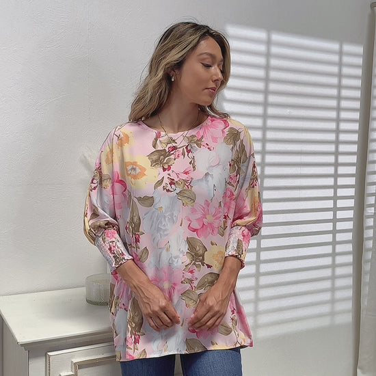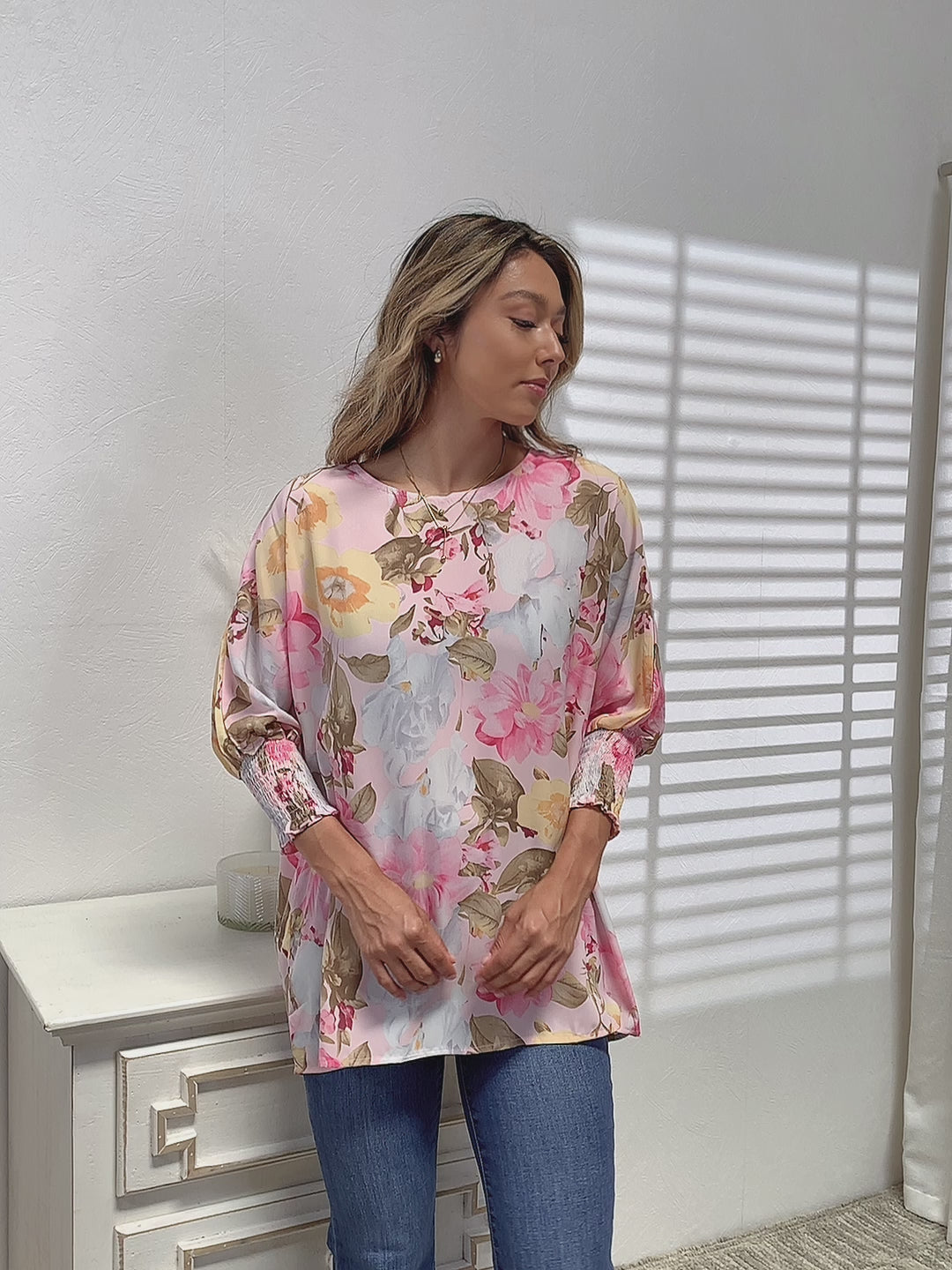 Blusa con mangas tres cuartos y estampado floral en color rosa ruborizado