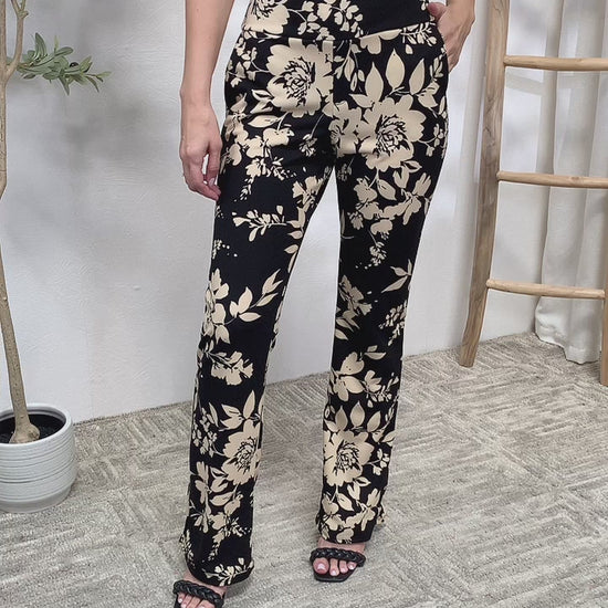 Pantalones acampanados florales de cintura alta en negro/taupe