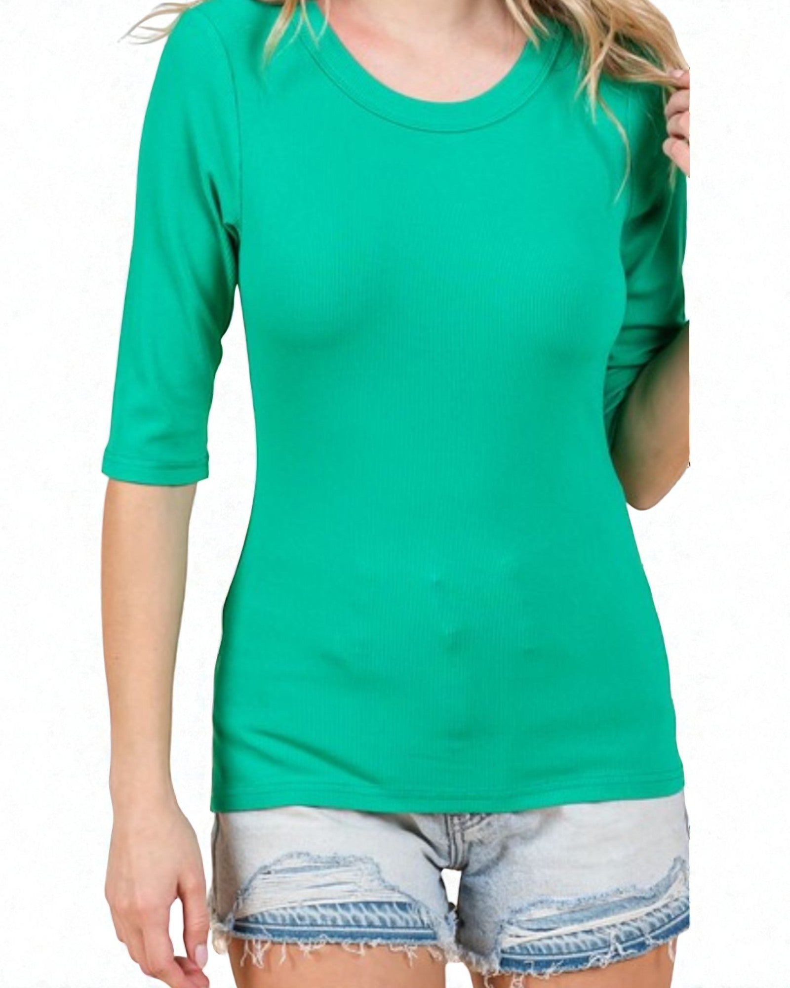 Emerald Green 3/4 Sleeve Scoop Neck Tee