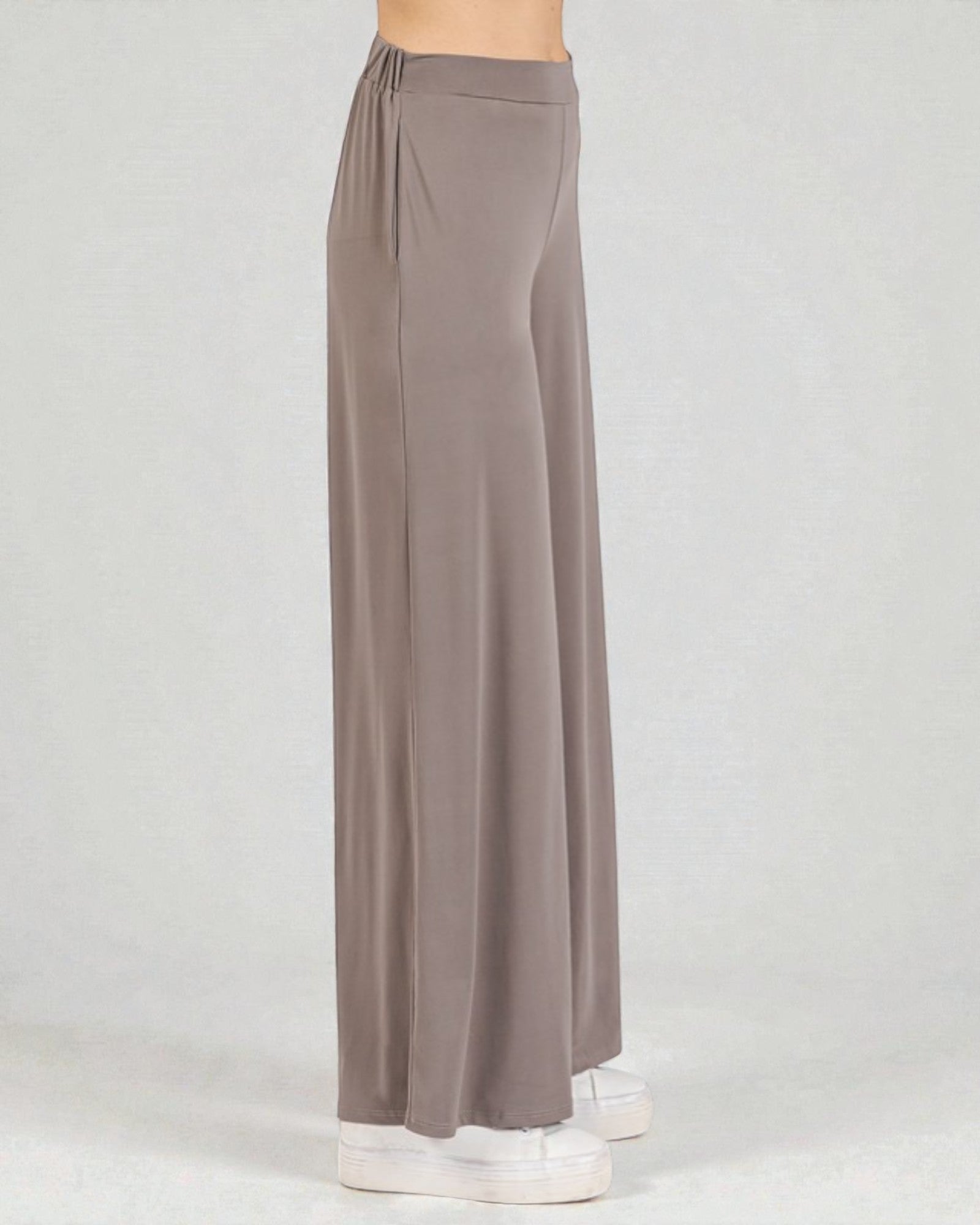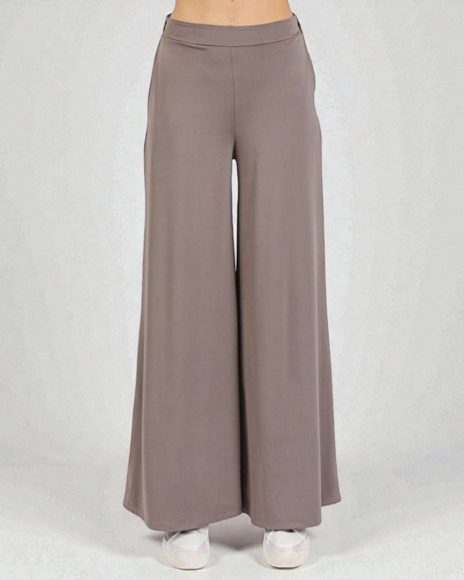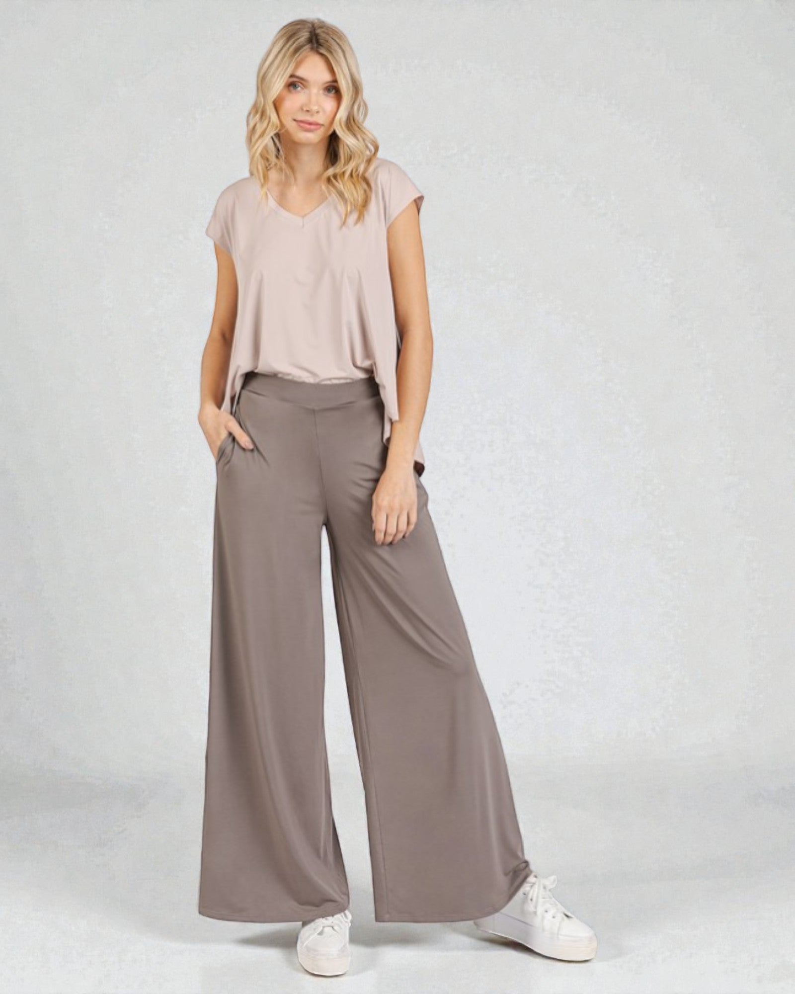Slip into comfort without sacrificing style. These high-waist wide-leg lounge pants blend nylon and spandex for a fabric that moves with you—stretchy enough for all-day wear, durable enough to handle the wash cycle. The taupe hue pairs effortlessly with everything in your closet, making them your new go-to for working from home, running errands, or just vibing on the couch. Cozy never looked this good.