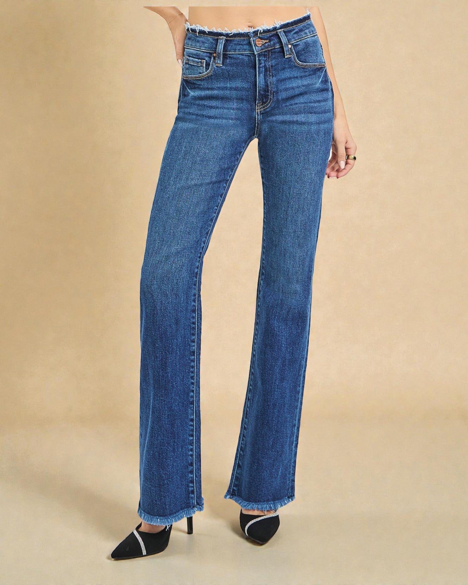 Effortlessly chic and ready for anything, these medium wash bootcut jeans are your new go-to. Crafted from a soft cotton blend with just enough stretch to move with you, they sit at a flattering mid-rise and feature a trendy frayed hem for that perfectly lived-in vibe. Available in plus sizes, because great style comes in every size. Slip them on and feel the difference quality denim makes.