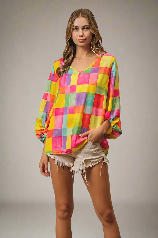 Aqua & Rainbow V-Neck Tunic Tee