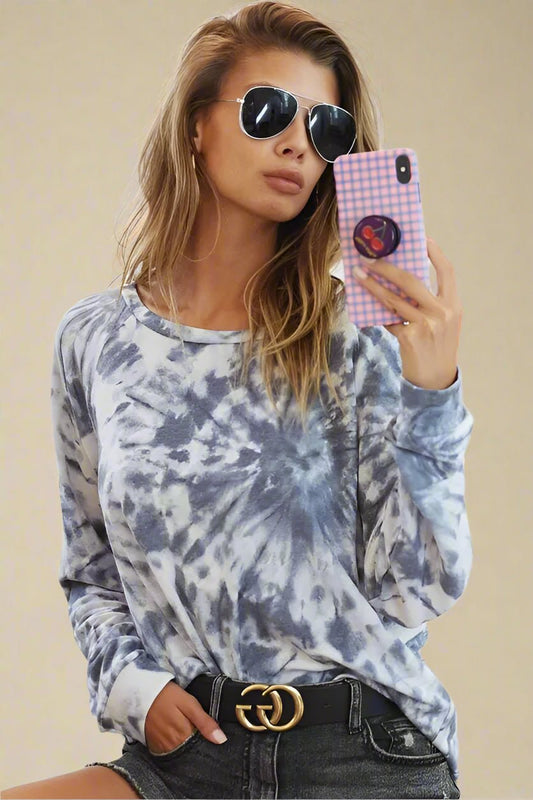 Blue & Rose Tie-Dye Pullover Sweatshirt