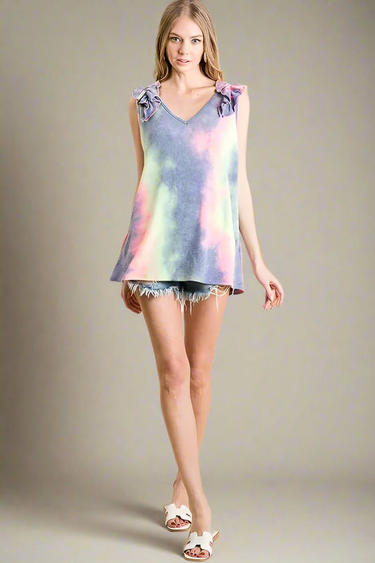 Rainbow Tie-Dye Lace-Up Top