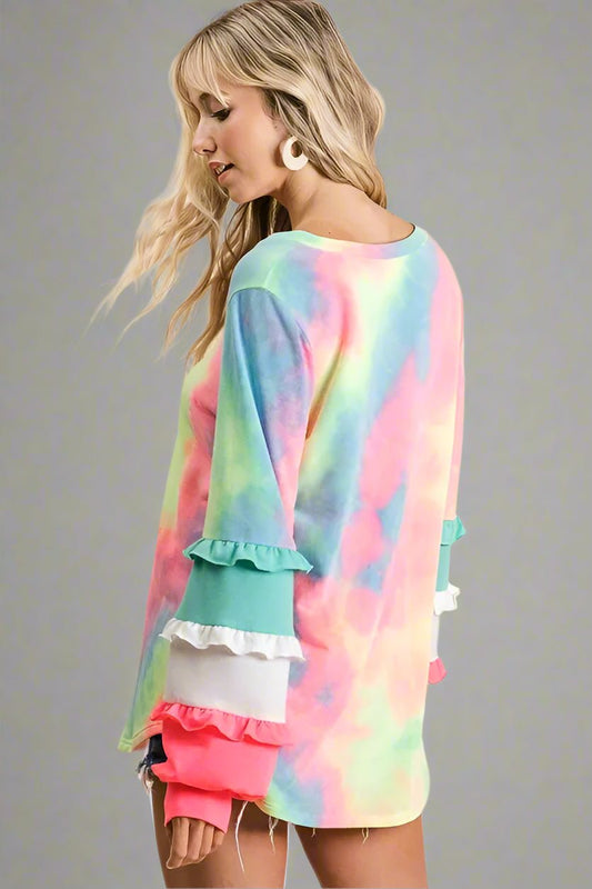 Sunburst Multi Tie Dye Short Sleeve Top