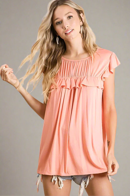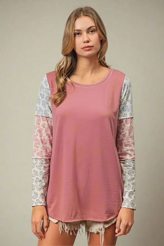 Lilac Pearl Accent Colorblock Ruffle Sleeve Top
