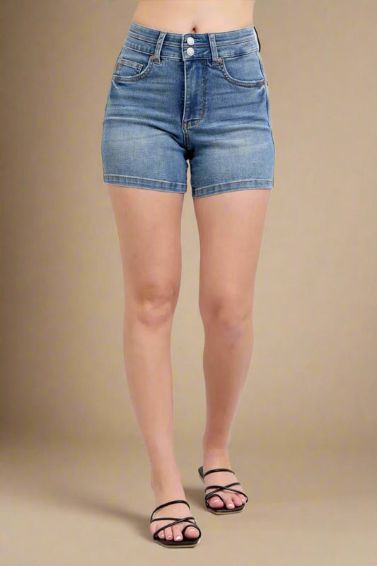 High Rise Stretch Denim Shorts – Light Vintage Wash