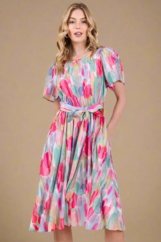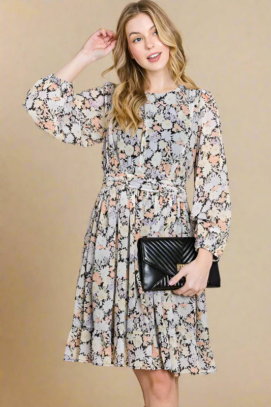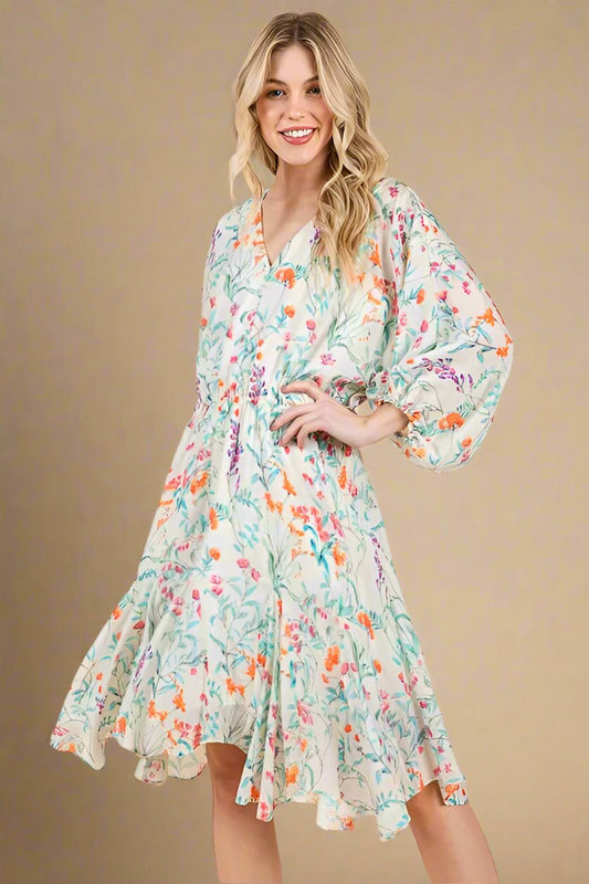 Rose & Blue Floral Puff Sleeve Mini Dress