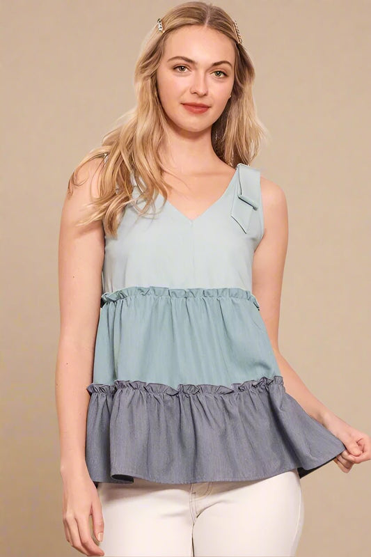 Medium Wash Two-Tone Hem Wide Leg Jeans
