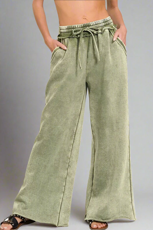 Medium Wash Drawstring Wide Leg Jeans