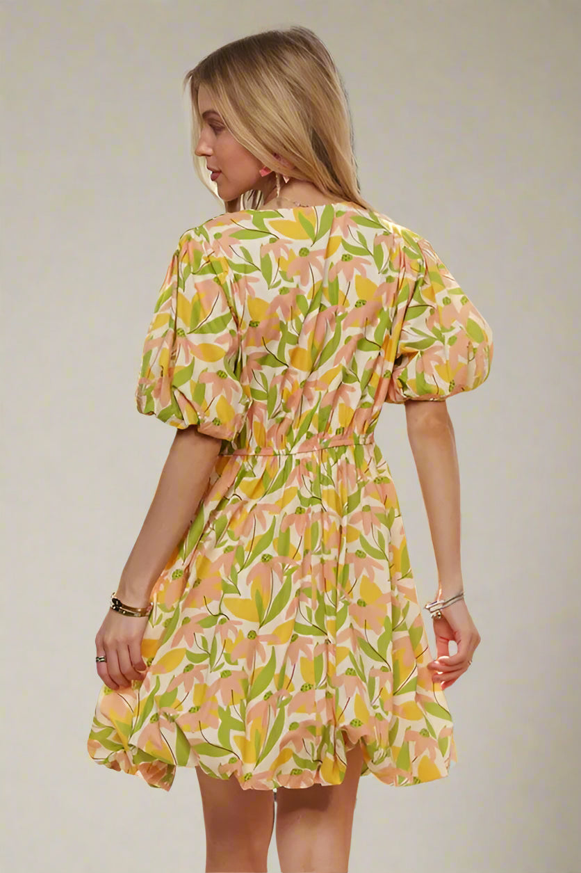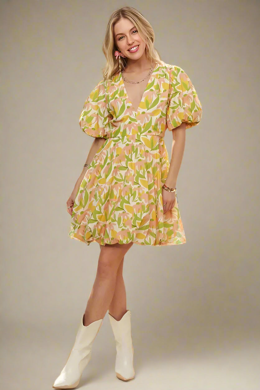 Bold Floral Puff Sleeve Mini Dress – Citrus Multi