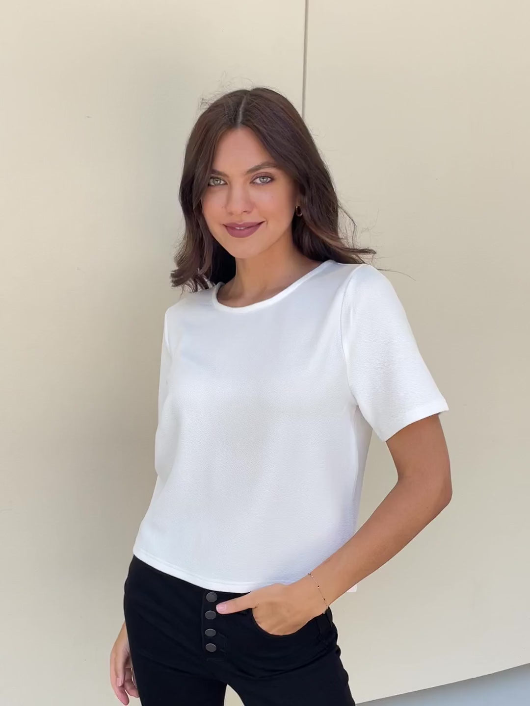 Préparez-vous à faire tourner les têtes avec notre t-shirt dos nu à détails de perles croisées ! Avec ses détails croisés uniques et ses élégants ornements de perles, ce t-shirt blanc cassé ajoute une touche de sophistication à n'importe quelle tenue. De plus, la taille inclusive assure un ajustement parfait pour tous les types de corps. Améliorez votre look avec cet incontournable de votre garde-robe.