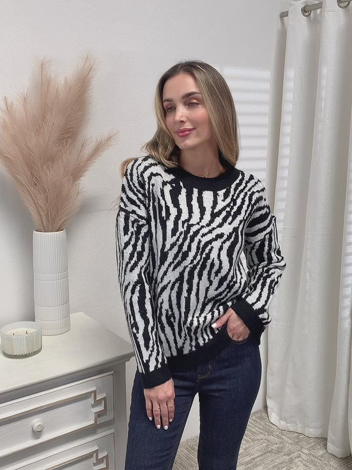 Pull imprimé zèbre noir et blanc