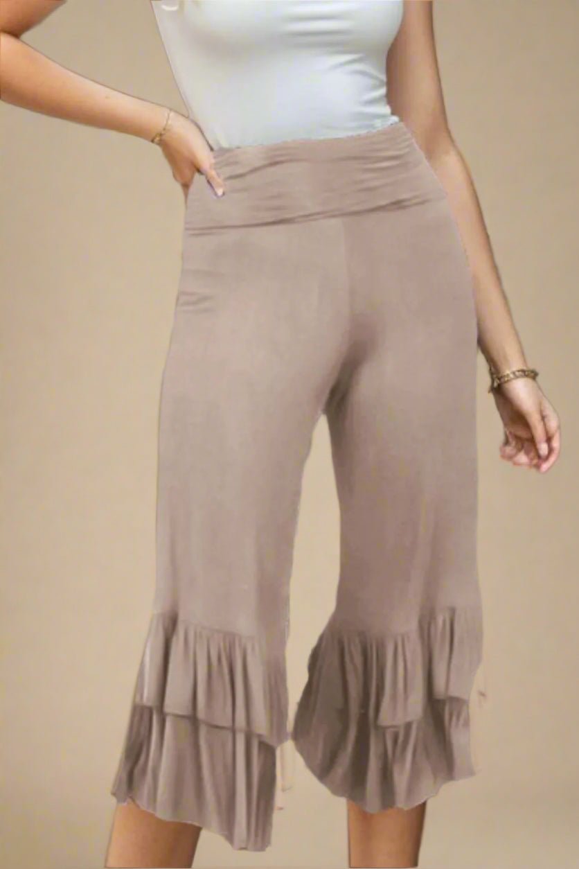 Tiered Ruffle Hem Knit Pants – Mocha Taupe