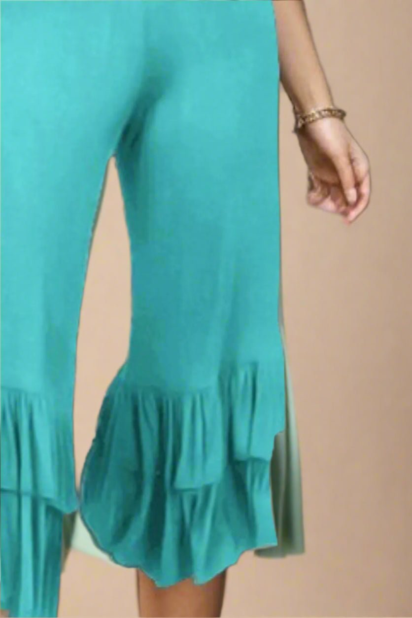 Tiered Ruffle Hem Knit Pants – Tropical Aqua