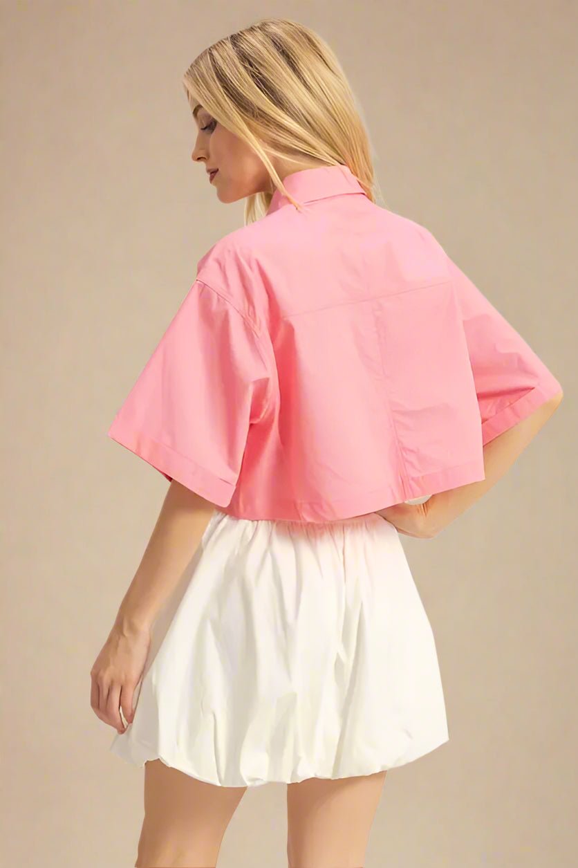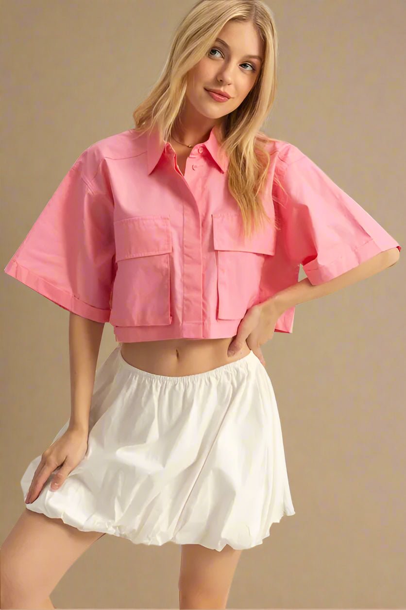 Boxy Utility Crop Shirt in Bubblegum Pink