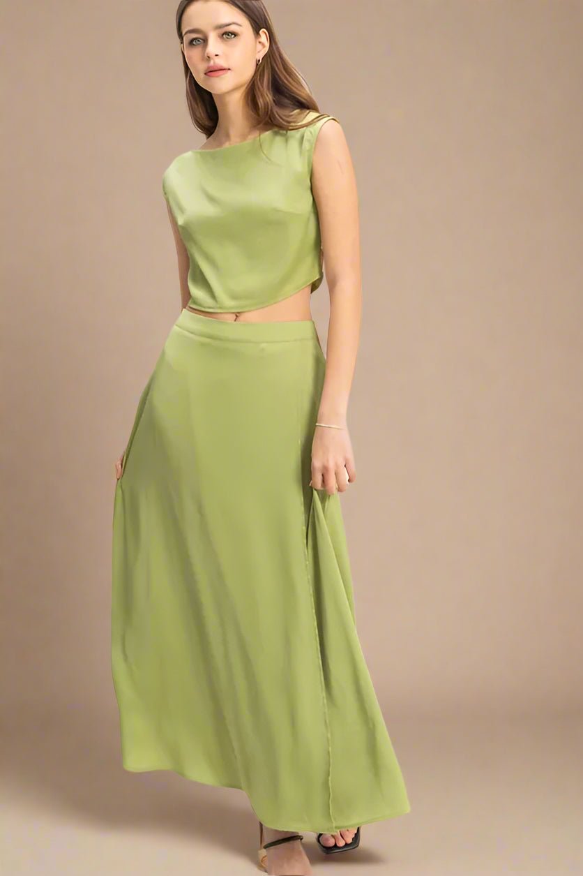 Olive Crop Top and Maxi Skirt Set