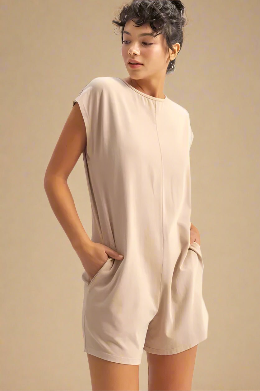Get ready to romp in this Taupe Washed T-Shirt Romper! Made with a cotton blend and light stretch, it's perfect for any adventure. And did we mention it has pockets? Yes, pockets! Stay comfortable and stylish with this cute and practical piece.