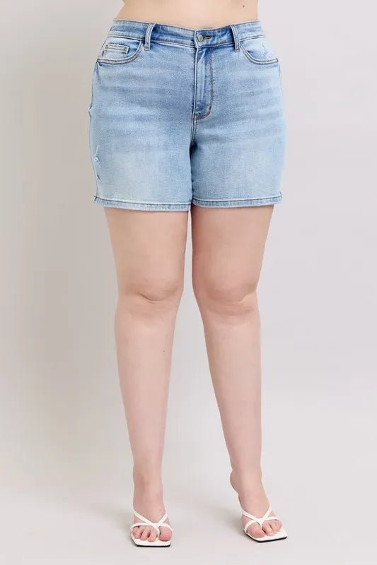 Get ready to rock summer in our Bleach Wash Classic Denim Shorts! Made from a comfy cotton blend with just the right amount of stretch, these shorts move with you all day long. Plus sizes available to keep everyone feeling fabulous and free. Perfect for sunny days and spontaneous adventures!