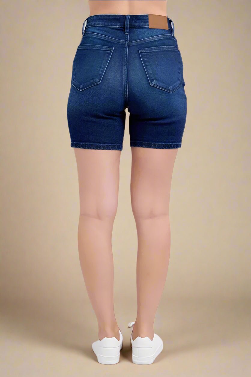 These Dark Denim Mid-Length Shorts offer a comfy cotton blend with just the right amount of stretch to move with you. Featuring a flattering v-waist design, they’re perfect for showing off your style while keeping things easy and breezy. Plus sizes available to celebrate every shape—get ready to rock your summer look with confidence and fun!