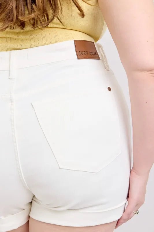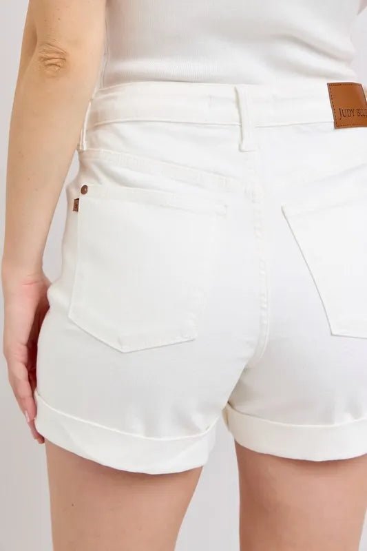 High Rise Cuffed Denim Shorts – Clean White Wash